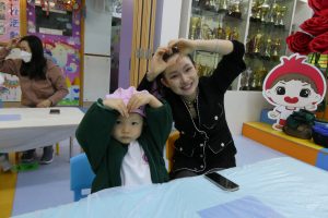 繼而來到祝福滿滿,在波波池中滿載祝福語的心心。成功釣到心心,就能得到豐富的禮物。時間夠了,籃子都乘載著滿滿的祝福,我們還得到可愛的卡通氣球多有趣呀!最後挑戰跳彈床,盡情放電吧!勉熙說:你睇,梁老師就在這裏!梁老師見他玩得滿頭大汗還主動幫忙抹汗,真是非常細心。我們更邀請梁老師一起拍照,真窩心啊!